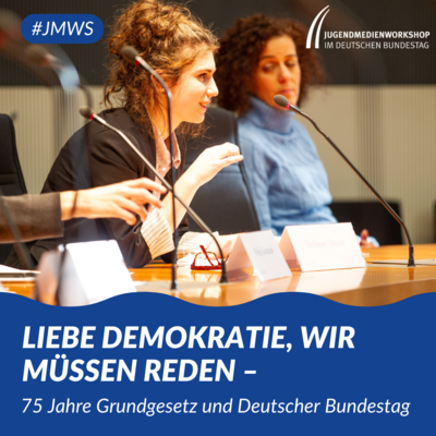„Liebe Demokratie, wir müssen reden – 75 Jahre Grundgesetz und Deutscher Bundestag“ - Das ist der Titel des diesjährigen Jugendmedienworkshops im Deutschen Bundestag, ein Workshop für politik- und medieninteressierte Jugendliche zwischen 16 und 20 Jahren vom 6. bis 12. Oktober 2024.